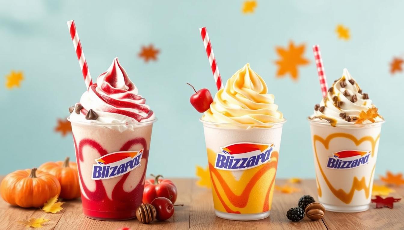 The Pumpkin Pie Blizzard is a top pick. It mixes creamy vanilla soft serve with real pumpkin pie and a graham cracker crust. The Caramel Apple Pie Blizzard is also a hit, with vanilla ice cream, apple pieces, and caramel swirls.